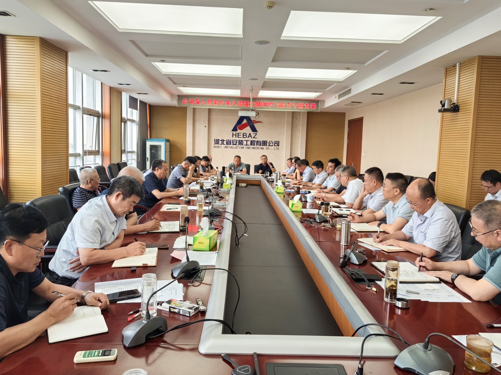 2025年9月3日,為紀(jì)念中國(guó)人民抗日戰(zhàn)爭(zhēng)暨世界反法西斯戰(zhàn)爭(zhēng)勝利80周年,河北省安裝工程有限公司積極組織職工集中觀看閱兵盛況直播。公司機(jī)關(guān)及各分公司、項(xiàng)目部共計(jì)2000余人通過(guò)多種方式同步參與,共同回顧歷史、緬懷先烈、展望未來(lái)。上午9時(shí),習(xí)近平總書(shū)記發(fā)表重要講話(huà),9時(shí)19分大閱兵正式開(kāi)始,公司機(jī)關(guān)及各分公司、項(xiàng)目部會(huì)議室座無(wú)虛席,職工們們整齊地坐在屏幕前,神情莊重地注視著電視畫(huà)面。在閱兵式過(guò)程中,